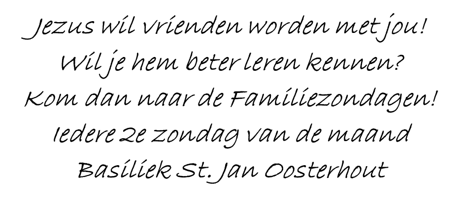 | Datum nog niet bekend | Viering Eerste H. Communie (geen Familiezondag) in Basiliek St. Jan |